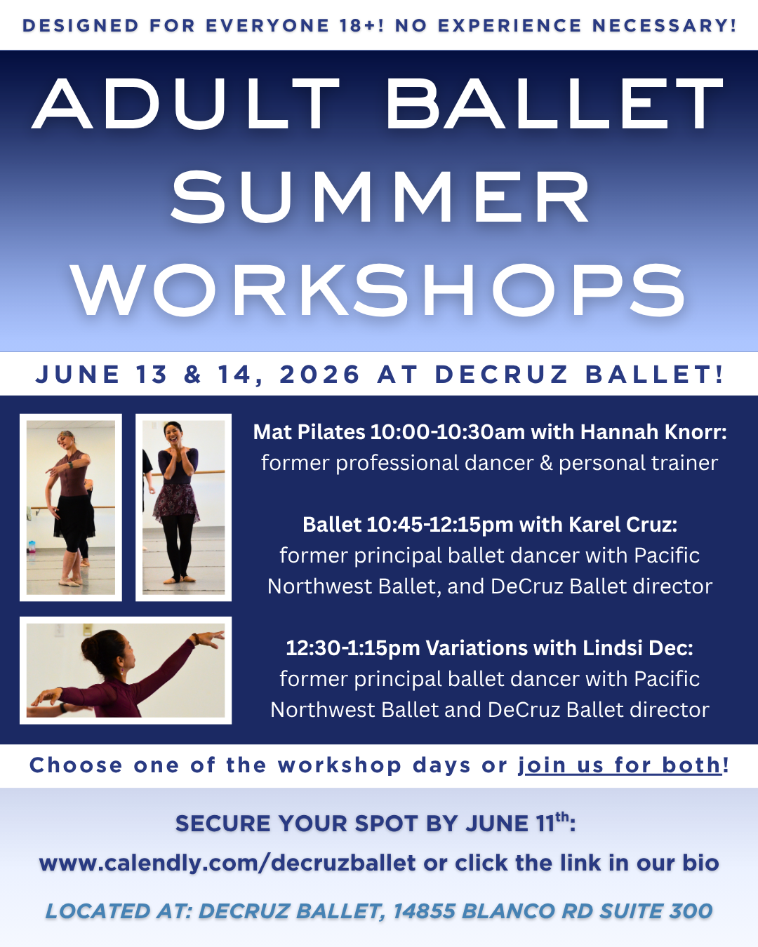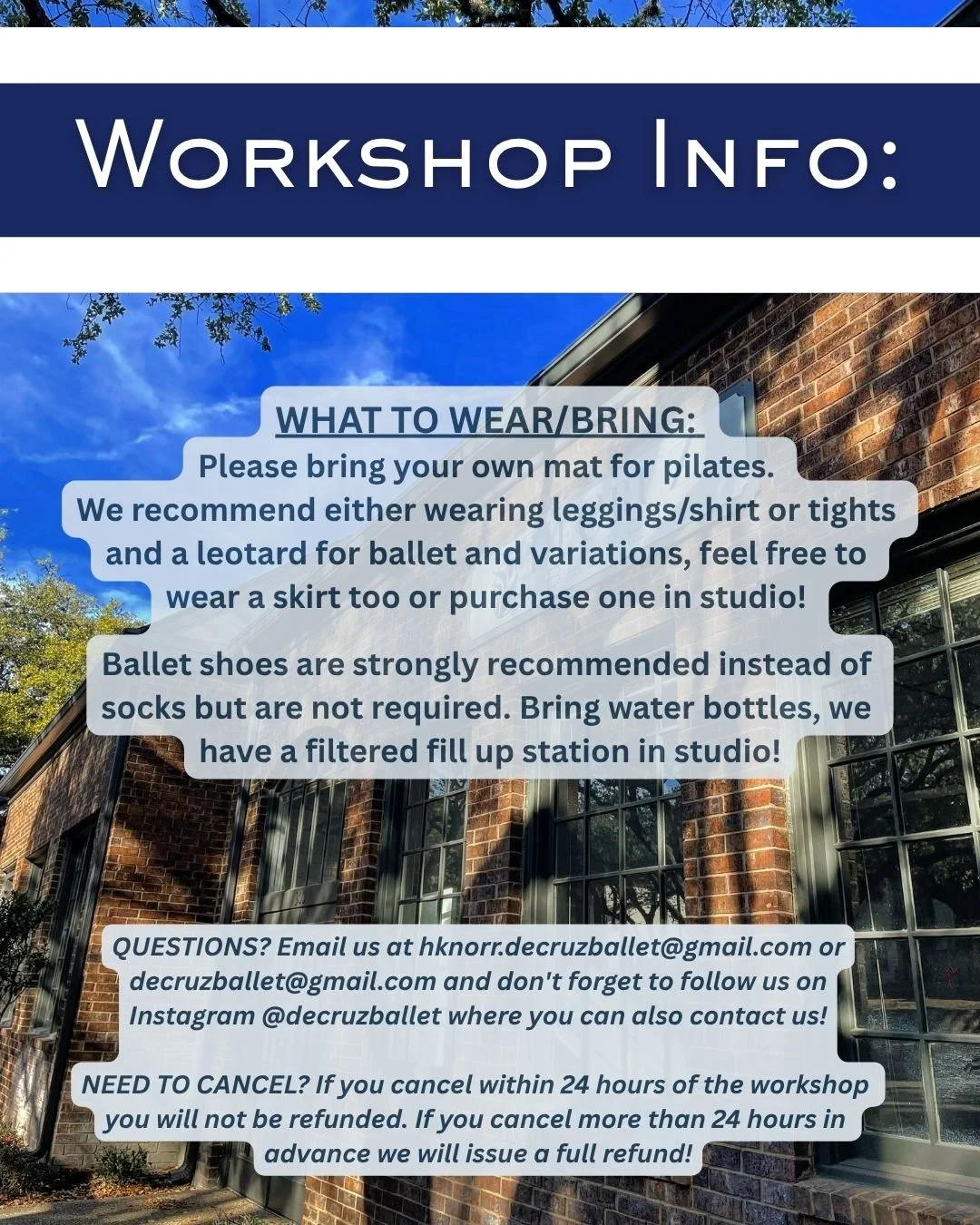*PLEASE NOTE: We do not accept cash or card, only Venmo @decruzballet or Paypal (lindsidec@gmail.com).